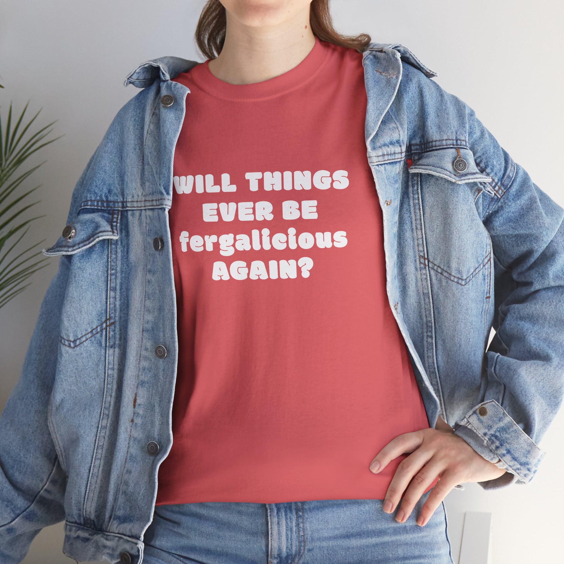 Unleash your inner 2000s queen! This funny graphic tee asks the question every pop culture fan secretly wonders: "Will Things Ever Be Fergalicious Again?" Featuring a bold, Y2K aesthetic design, this shirt is perfect for 90s kids, 2000s music lovers, and anyone who misses the iconic era of pop hits.